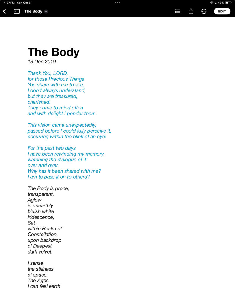 In February of 2017 I was approached by a couple of ladies in the home Bible study group my husband and I were regularly attending and asked if I would consider composing lyrics that might possibly be set to music. They were both members of the church worship team and it was thru this invitation I learned of a little campus competition going on. A music cd was in the making and a hunt for lyrics was on. I told them I’d think about it. Then one evening, while my husband fixed dinner, I sat in my prayer chair and penciled these words. The lines above were inspired by Galatians. At the time I imagined them as being the chorus. Out of that flowed the following verses. To my knowledge they have never been set to any music and as I share this post I find myself editing a place or two. Until that moment in time I’d never considered writing. Now I can’t imagine what it would feel like to never have experienced the joy. Godspeed to each of you in your own journey. You never know when you yourself might be greeted with a new opportunity…nor will you be able to imagine the place to which stepping out in faith will lead.