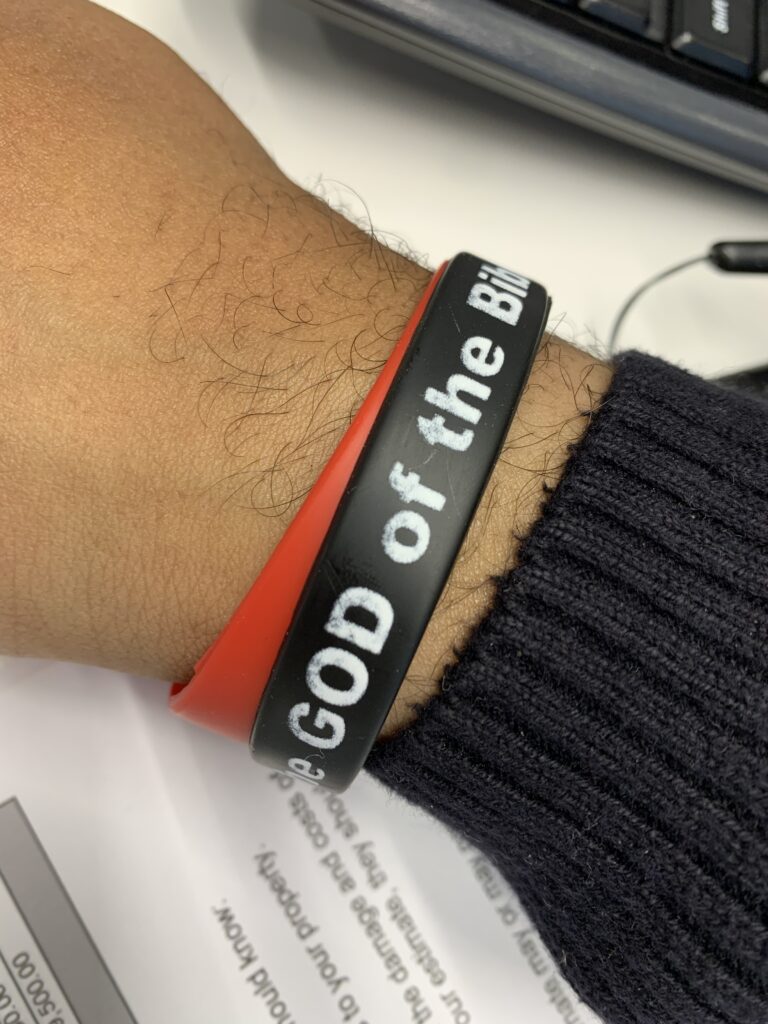 Its full sentence reads: “I serve the God of the Bible”. When I ask if I might take a picture of it, he removes his watch for me to do so. That little move just emphasizes ‘time’.