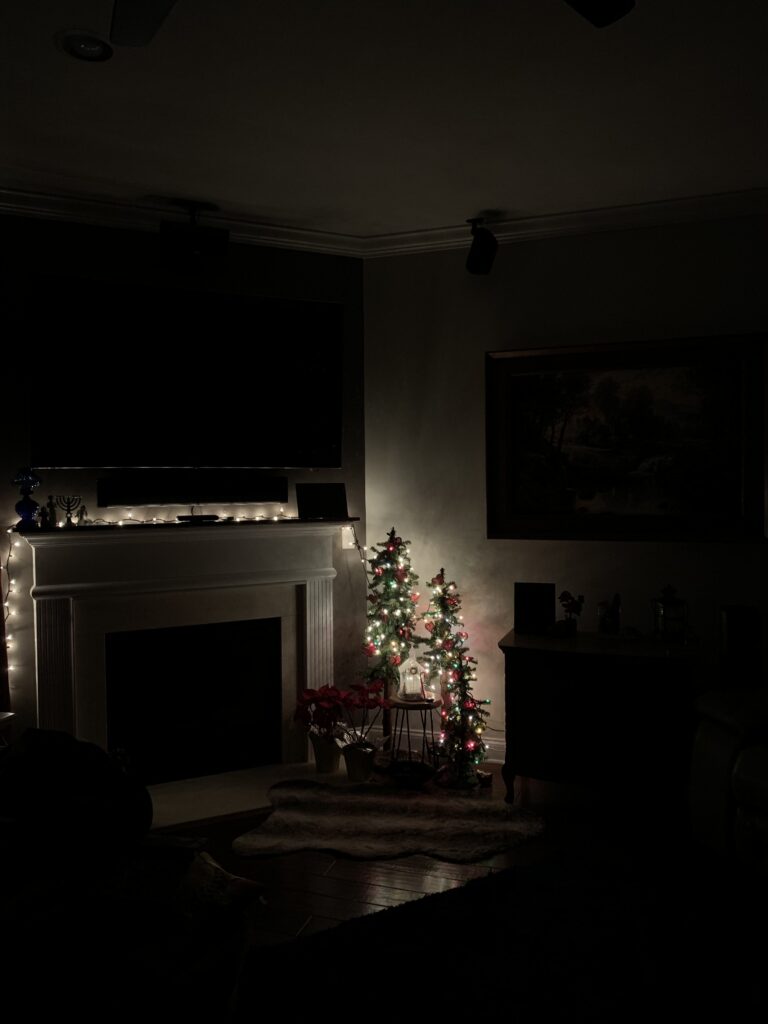 The sight helps slow spiraling thoughts…what a relief! Heartened by the soft radiance, I find it easier to breathe. Feeling a little less shaky, now, to the kitchen faucet I step; adding some water to the tea kettle, I press the button and wait. Across the room the lights beckon, so I walk closer to draw near to them, looking forward to the comfort of the tea that will soon be brewing.