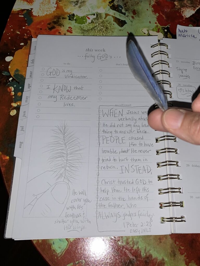 In the wee hour of this a.m., I consider this feather and revisit these promises.