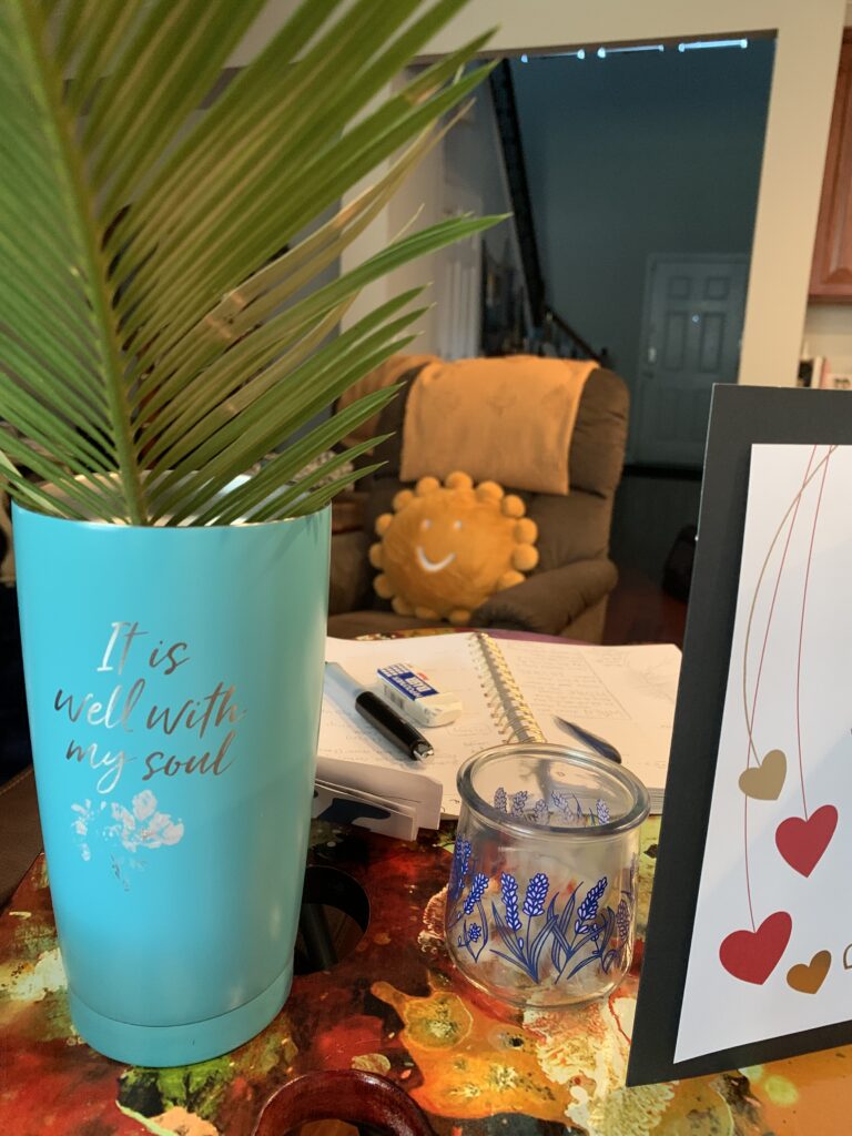 Yesterday I found a little blue bird feather. Picking it up, I gently twirled it about between my thumb and index finger, fascinated by the play of light and how it affected its color. I’ve a passion for collecting feathers and have staged them around my home and in my truck, using a variety of containers. To tell you the truth, each one says something pretty personal to me. The timing of each feather found has been a kindly reminder of some really powerful promises of God! These finely formed constructions remind me He’s keeping His Word! He knows how easy it is for me to get distracted by the drama around here and He knows how important it is for me to keep my thoughts on track!