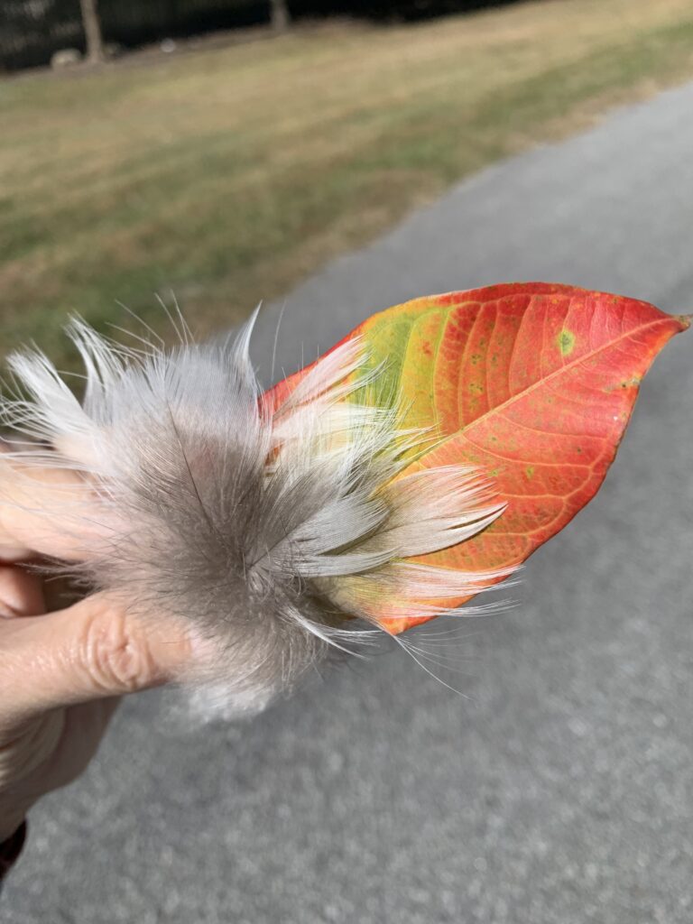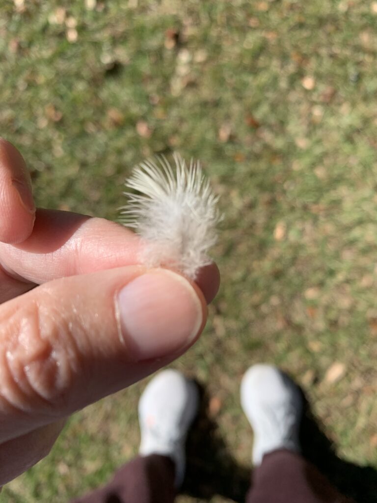 I queue up my trusty Apple Watch and set out to begin my walk. Immediately I’m met with a much larger feather!